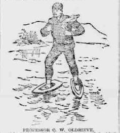 We here at Forgotten Stories are always fascinated by those moments when an idea takes root; you know, those moments that cartoons illustrate by showing a light bulb above Wiley E. Coyote’s head. Unfortunately, history doesn’t preserve how Oldrieve came up with his idea, but we do know that sometime during the summer of 1888, while working as a tightrope walker at Revere Beach in Boston, Oldrieve decided to embark on an exciting new career as an aquatic pedestrian.