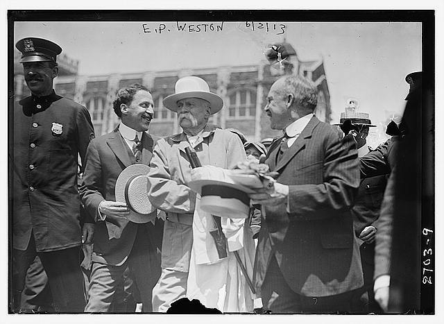 With mere hours left until noon on February 10, 1907 Oldrieve began striding past the suburbs of New Orleans, with his wife cheering him on. At an hour left, he hit the city limits, and with 45 minutes left he passed the Canal Street Bridge. Then trouble struck; Oldrieve got caught in an eddy created by a passing steamboat spinning around and around. Caroline was too far away to reach him, and as the Professor lost balance he was only just able to grab the outstretched hand of a black stevedore who’d spotted his peril and reached over the gunwale of a coal barge.