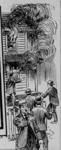 With his old pants rolled under his arm, Adolph was strolling down Main Street when the fire bells rang out. Along with most of Auburn’s population, Adolph ran to the Weber household; the fire was already fairly well underway. Several witnesses saw him break the window glass with his old pants, and throw them on the flames. Rescuers managed to carry little Earl’s body outside, wrapped in the curtains which had been [Wife’s] pride. Adolph’s blow with the gun hadn’t killed the boy, but he expired a few moments later on the front lawn. Other neighbors managed to drag the family piano, an elaborate model costing $9000, out on the front lawn; the rest of the house burned to the ground.