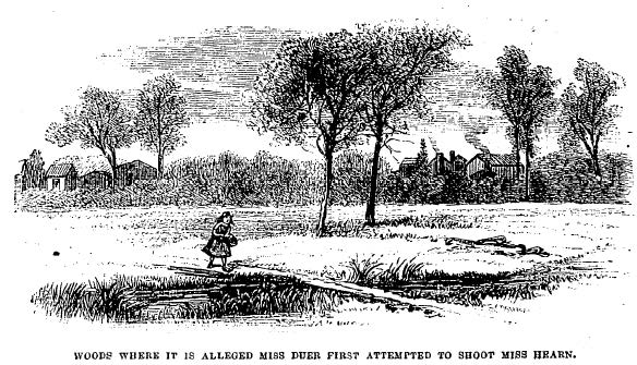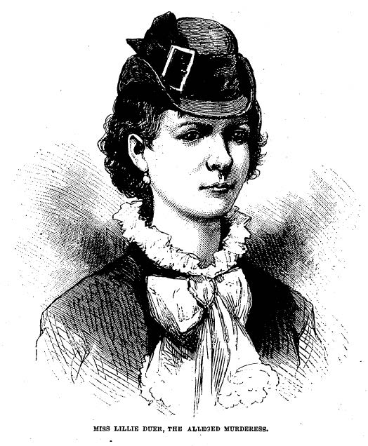 Ella agreed and the walks resumed, but things did not smoothly go back to the way they were before.  Lillie was suspicious, Ella standoffish.  In late October, 1878 the two had a falling out while they were out in the woods, ostensibly picking tea-berries.  Ella declared in a huff she was going home; Lillie pleaded with her to wait; Ella refused.  Lillie whipped out her pistol, fired two shots in Ella’s general direction, and then broke down crying.  Ella snatched the gun from her, asking if Lillie had intended to murder her.  “No,” the weeping woman responded, “I only intended to frighten you and make you wait for me.”
