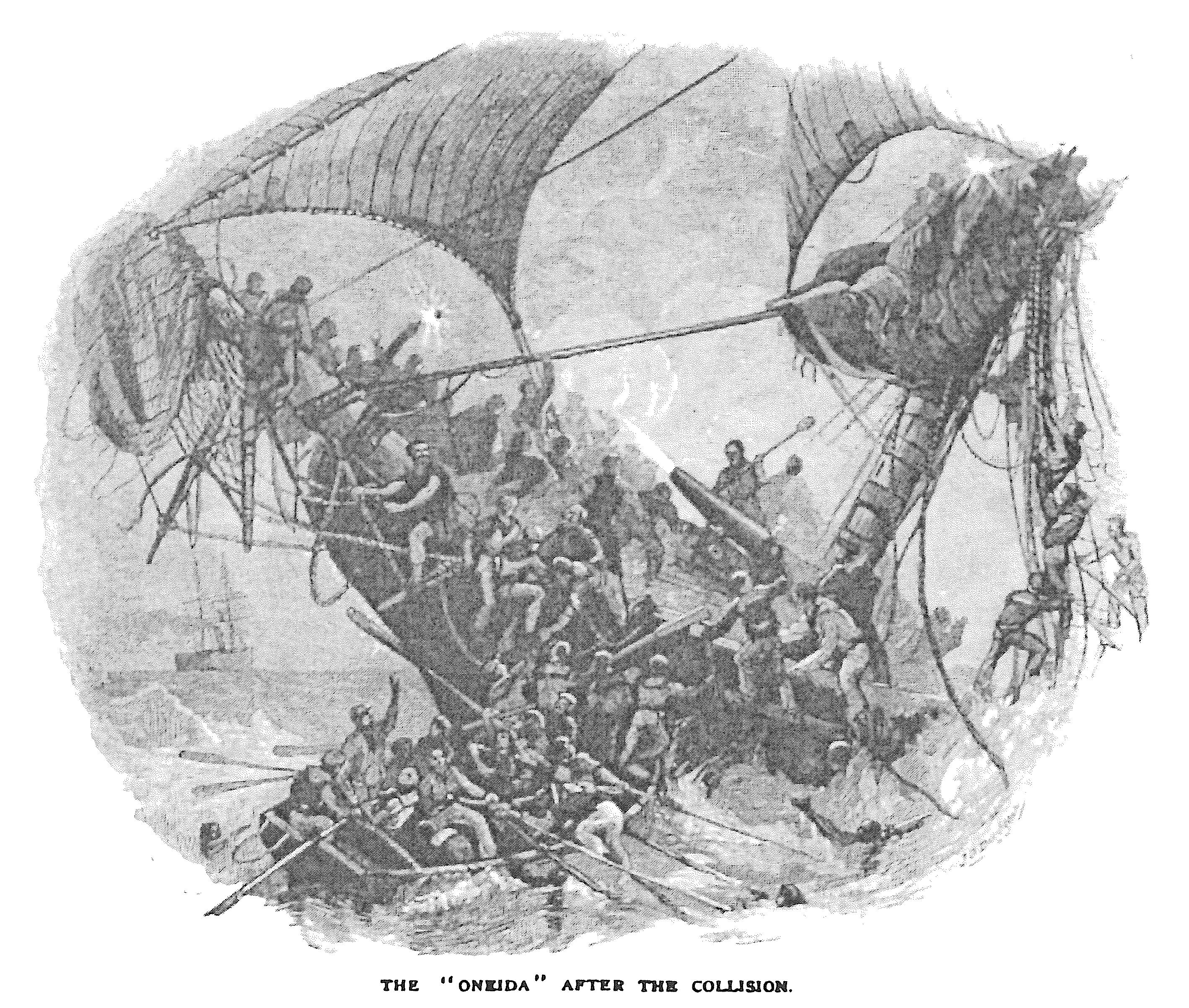 Not until Suddards arrived did Yokohama begin to stir itself. Bombay was the only ship in the harbor with her steam up, but Eyre refused to sail. Only when dual orders from the Pearl and Orient offices and the British Navy arrived did Eyre agree return to the scene of the collision. Eyre’s efforts and those of the Sylvia, Ocean, and Vsadnick could not help Oneida’s crew. The few survivors not fortunate enough to find a spot on board the cutters perished hours before any of the erstwhile rescuers arrived.
