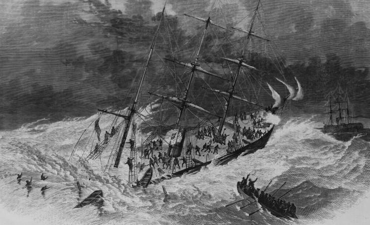 Moments before Crowinshield hit the water he shed his overcoat, a desperate struggle against the Oneida’s vortex brought him to the surface directly besides Yates’ cutter. The men hauled him aboard, sputtering and chilled. Yates spotted Stewart as well, from across the water Stewart appealed in desperation; “Yates, for God’s sake save me.” Yates ordered the men to row backwards to reach Stewart, they were only a few feet from him when he sank beneath the waves. Other sailors managed to come alongside, and the boat filled rapidly. Aided by their crewmates, men who could not fit into the overloaded cutter tied handkerchiefs to the gunwale and hung on with fingers rapidly stiffening in the frigid air.